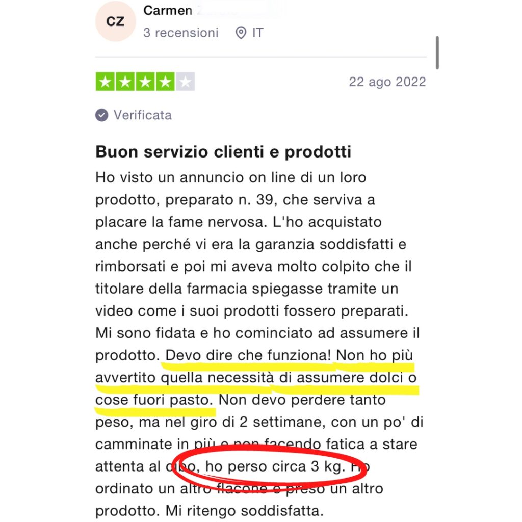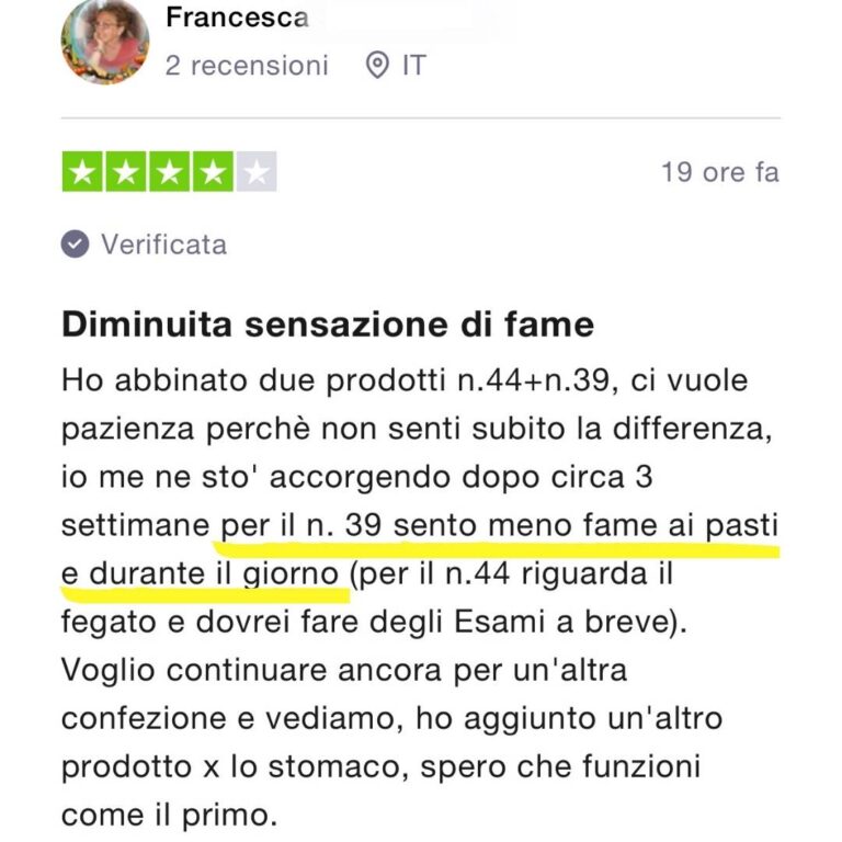 Da quando ho proposto, in abbinamento al prodotto 39 che blocca la fame nervosa, anche il preparato anti-gonfiore a base di Tarassaco e Pilosella, è successa una cosa magnifica.