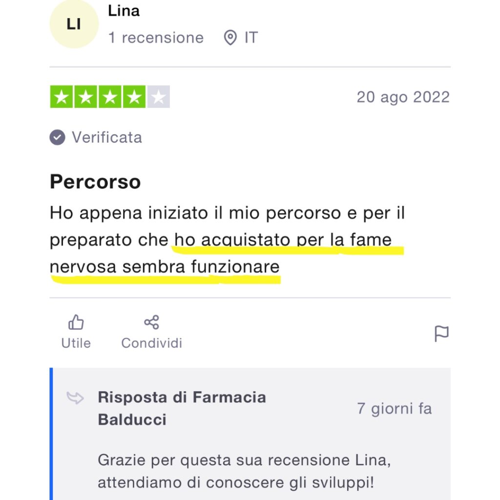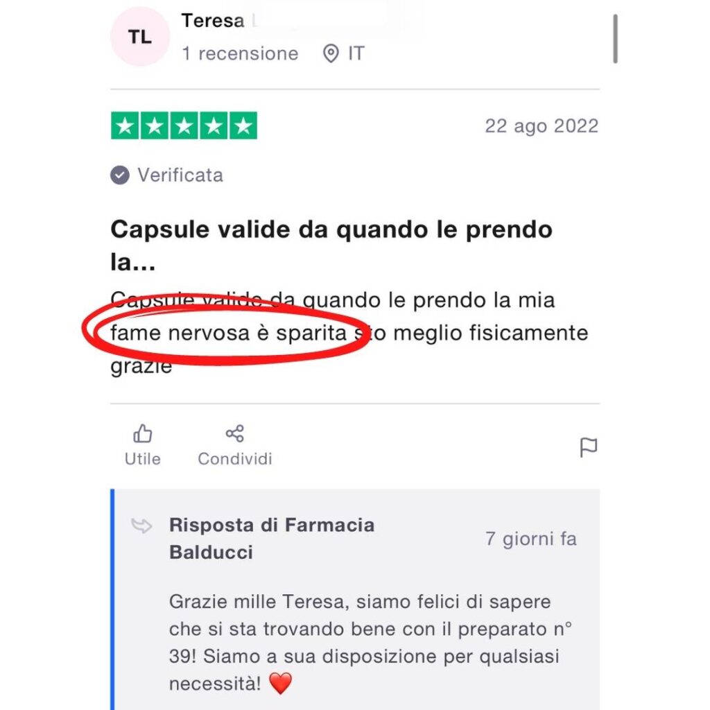 Il preparato Balducci n. 39 ti potrà aiutare a ridurre sensibilmente la fame nervosa, e quindi a raggiungere i tuoi obiettivi di dimagrimento e di controllo del peso.